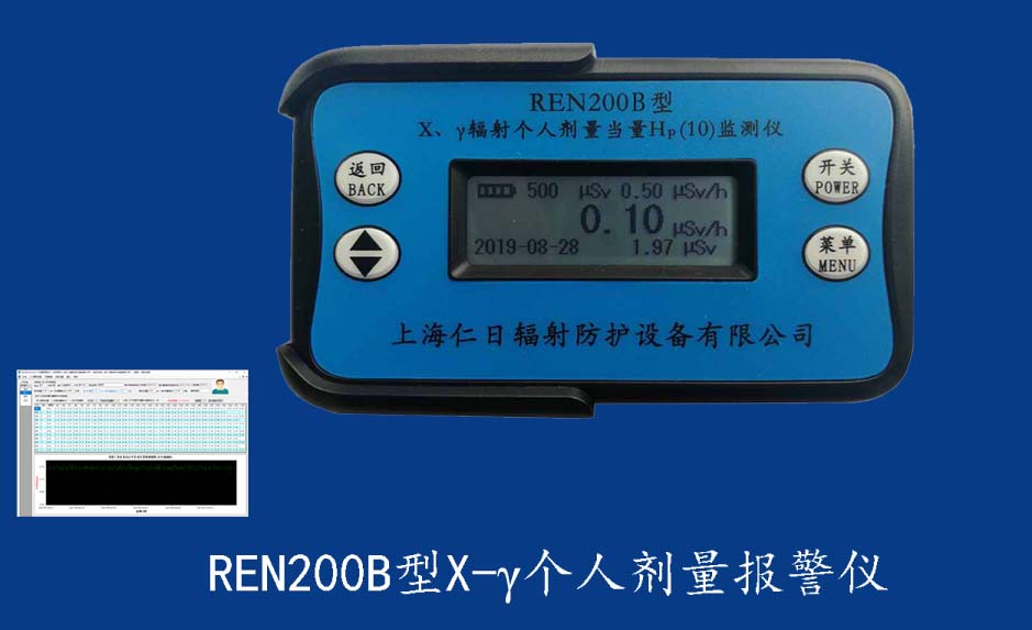 REN200A型X、γ輻射個(gè)人劑量當(dāng)量HP(10)監(jiān)測儀(簡稱:個(gè)人劑量報(bào)警儀)內(nèi)置高靈敏度蓋格計(jì)數(shù)管為探測器,主要用來監(jiān)測各種放射性工作場所的X、γ以及硬β射線的輻射,具有響應(yīng)快,測量范圍寬的特點(diǎn)。能顯示工作場所的劑量當(dāng)量率和累積劑量,更換電池時(shí),日期及累積數(shù)據(jù)能永久保存?蛇x配RenRiPersonal個(gè)人劑量管理軟件,該軟件可存儲(chǔ)多個(gè)人的歷史數(shù)據(jù),能記錄日累積、月累積、年累積、輻照時(shí)長、計(jì)算平均劑量率、扣除或不扣除本底輻射,且以文字和圖譜的方式展現(xiàn)數(shù)據(jù)。廣泛應(yīng)用于核電站、加速器、鋼鐵、化工、同位素應(yīng)用、工業(yè)X、γ無損探傷、放射醫(yī)療、鈷源治療、γ輻照、放射性實(shí)驗(yàn)室、核設(shè)施周圍環(huán)境監(jiān)測等領(lǐng)域中的工作人員進(jìn)行個(gè)人安全